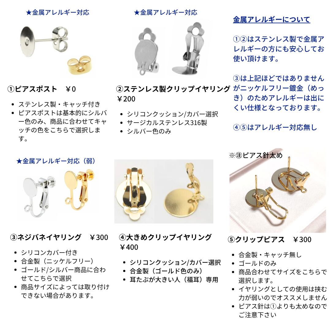 ※⑤クリップピアスはキャッチ不要ですが、下向き防止キャッチをお選び頂いた場合は別途お付けさせて頂きます。