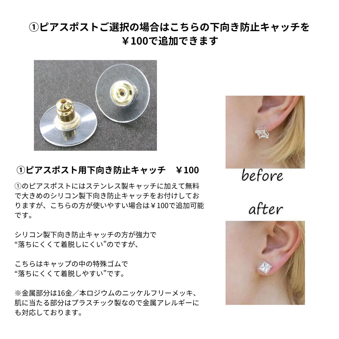 ※⑤クリップピアスはキャッチ不要ですが、下向き防止キャッチをお選び頂いた場合は別途お付けさせて頂きます。
