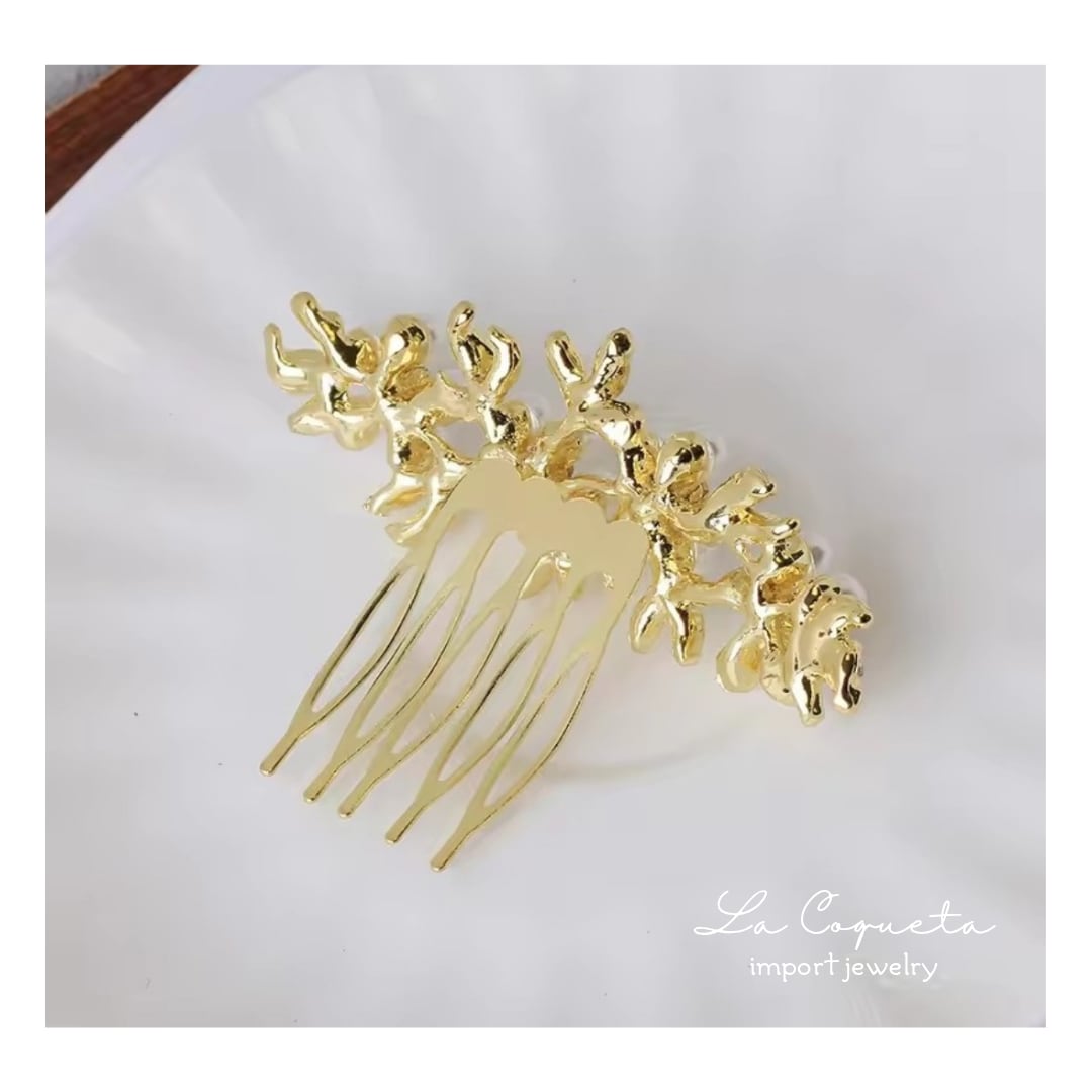 ※モチーフとコームはしっかりロウ付けされていますが、コームを曲げるとロウ付けが取れやすいので、コームは曲げずにそのままお使いください。