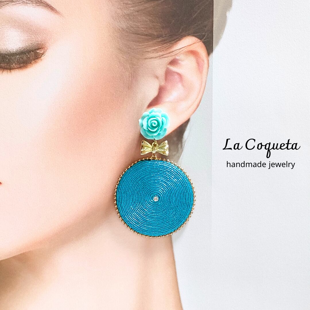 大きなクルクルソウタシエのフラメンコピアス/イヤリング(ライトブルー)