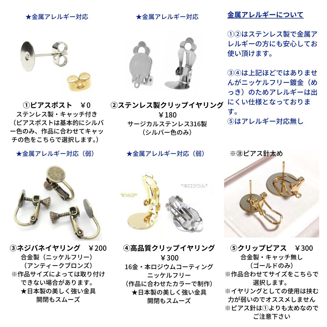 ※⑤クリップピアスはキャッチ不要ですが、D下向き防止キャッチをお選び頂いた場合は別途お付けさせて頂きます。(お手持ちのピアスにお使い下さいませ)